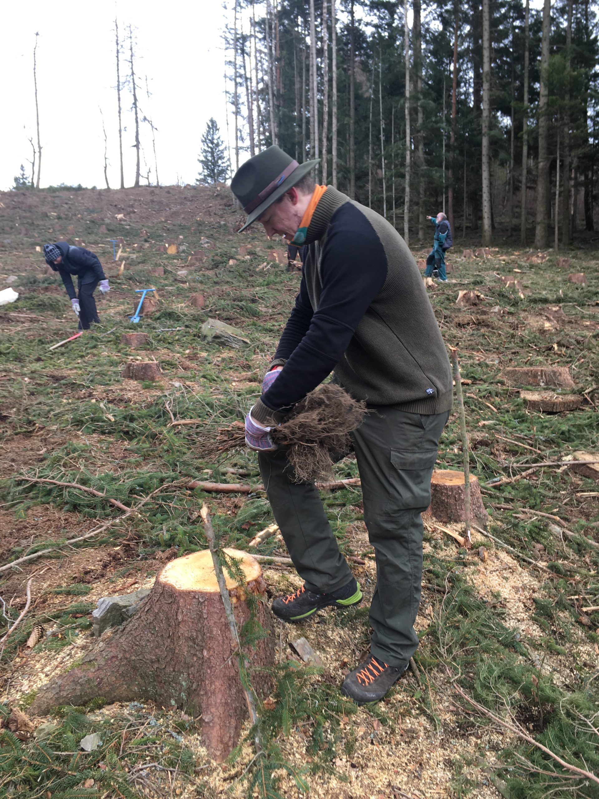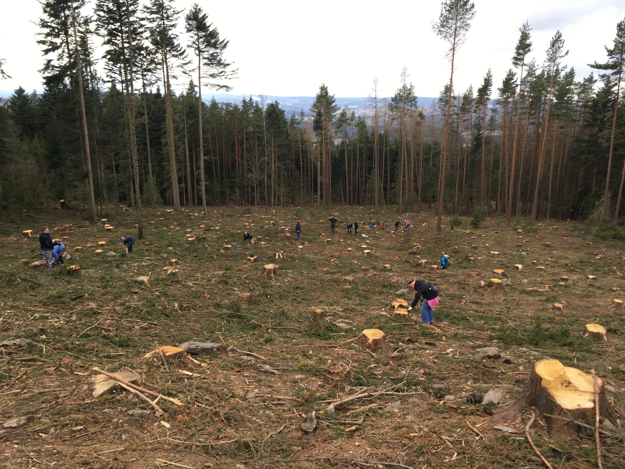 Sešlo se nás tam 25 statečných milovníků lesa a společně jsme pomohli smutnou paseku po kůrovcem zničeném lese proměnit v les nový.